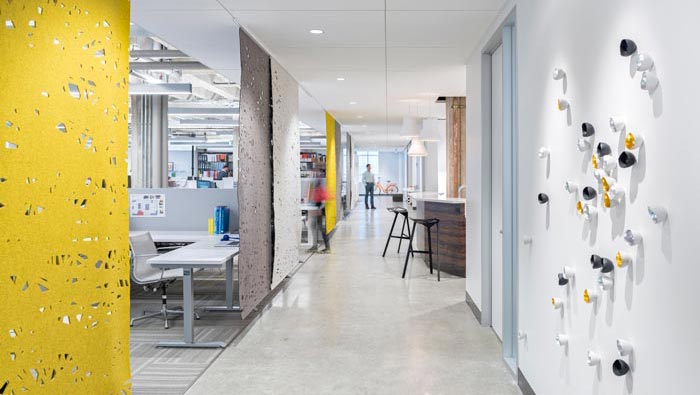 辦公區(qū)域的設(shè)計:設(shè)計師在設(shè)計的時候,按照部門的不同將空間分成若干個小型辦公空間,然后將小型辦公空間按照一定的比例進行排列,以此形成一個開放與獨立相融合的辦公空間,在設(shè)計師眼中不管是開放式的還是獨立式的,都是優(yōu)缺點的,設(shè)計師這樣做的目的就是希望將缺點進行中和。