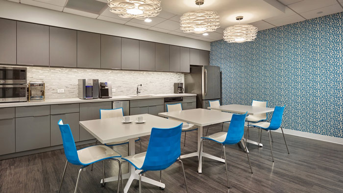 辦公室茶水間設(shè)計(jì):冰箱、微波爐、洗手池、咖啡機(jī)、收納柜構(gòu)成了茶水間的基本框架,可移動(dòng)的休息座椅保證空間的活躍性,在這樣員工可以遠(yuǎn)離壓力,讓自己的勞累的心得以歸零。