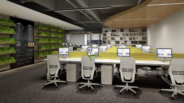 網絡辦公室辦公區(qū)設計:設計師對空間采用7:3的比例對空間進行劃分,在為企業(yè)打造舒適辦公空間的同時,以過道起到連接空間的作用,同時綠植的點綴為空間帶來絲絲活力。