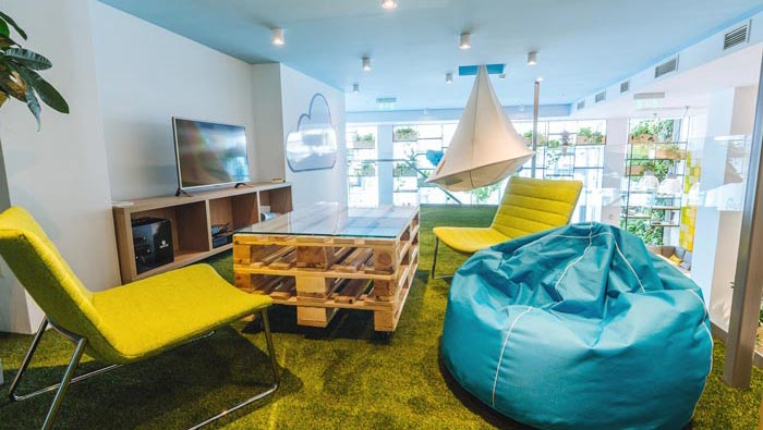 旅游門戶辦公室接待區(qū)設(shè)計(jì):設(shè)計(jì)師在設(shè)計(jì)的時(shí)候,將休息、娛樂、觀賞、自然融入其中,在設(shè)計(jì)師看來此時(shí)的客戶更需要的時(shí)候一些娛樂活動(dòng),設(shè)計(jì)師希望讓客戶在此處仿佛置身于大自然一般,愜意、舒適、安逸。