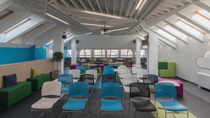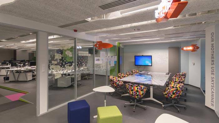 旅游門戶辦公室培訓(xùn)區(qū)設(shè)計(jì):此處的培訓(xùn)區(qū)域不只是針對企業(yè)內(nèi)部,同時(shí)也是針對客戶旅行前的培訓(xùn),設(shè)計(jì)師在設(shè)計(jì)的時(shí)候,重點(diǎn)考慮的問題就是,如何在有限的空間之中,將容納擴(kuò)大化。