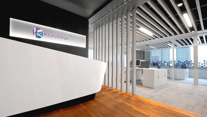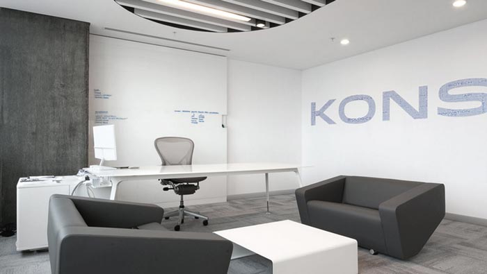 進(jìn)門區(qū)域的設(shè)計(jì):設(shè)計(jì)師在設(shè)計(jì)的時(shí)候,結(jié)合空間的實(shí)際情況,最后決定采用去前臺的設(shè)計(jì)手法,這樣一來一方面可以進(jìn)一步深化辦公流程,另一方面也可以彌補(bǔ)空間的不足,流線型的白色造型加上白色logo墻與彩色logo,也為企業(yè)帶來了一絲靈動或活力。