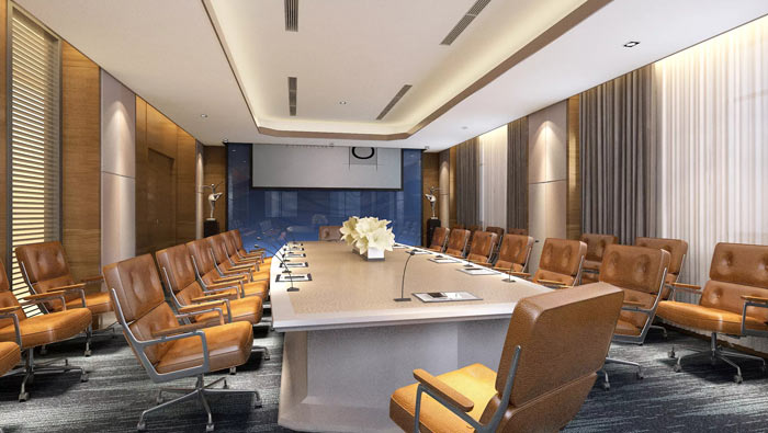 辦公室會(huì)議室設(shè)計(jì):空間可以容納20個(gè)人,灰色的地毯包容了整個(gè)空間,設(shè)計(jì)師這樣做的目的,就是希望大家在討論當(dāng)中,可以求同存異,這對(duì)于未來(lái)的發(fā)展至關(guān)重要。