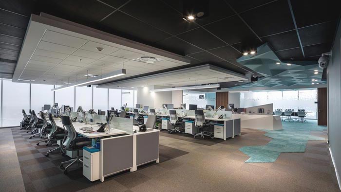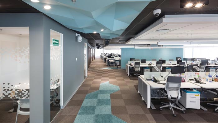 500平方辦公室辦公區(qū)設計:此處為辦公區(qū)域的一個縮影,大家仔細看可以發(fā)現,設計師為每一個部門都預留了足夠的活動空間,同時每一個部門的辦公區(qū)下面采用的都是單獨的地毯,將空間劃分成一塊一塊的,讓空間在整體與局部之間有更加明朗的區(qū)分。