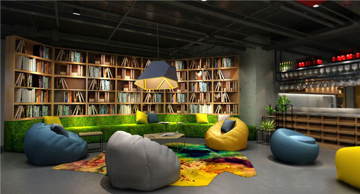 書吧的設計,設計師在設計的時候,以圖書館為原型,利于書架本身的隔離屬性將空間隔離與主空間之外,同時人性化的軟裝休息區(qū)域,更為員工打造休息、休憩與減壓。