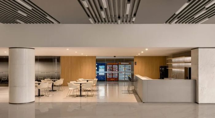 這是一個(gè)白色電器行業(yè)的辦公研發(fā)中心,設(shè)計(jì)師以海為靈感,打造了一個(gè)多元、開(kāi)放、包容的辦公空間。