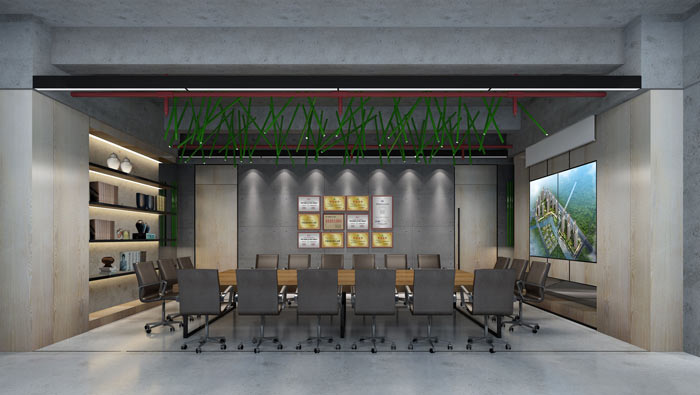 會(huì)議室效果圖:整個(gè)空間給人的第一感覺(jué)就是簡(jiǎn)單、大氣,但若是仔細(xì)看就可以感覺(jué)到空間的工藝十分復(fù)雜,前后左右將一切復(fù)雜歸于簡(jiǎn)單,為整體的簡(jiǎn)潔、大氣做出鋪墊。
