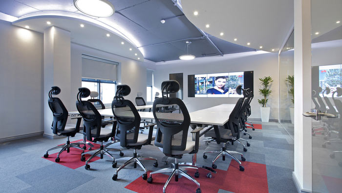 會(huì)議室效果圖:U字型的會(huì)議桌將空間的實(shí)用率達(dá)到一個(gè)新的高度,U字型的外緣供參會(huì)者使用,U字型的內(nèi)緣與整個(gè)空間相連,同時(shí)也為服務(wù)預(yù)留了很好的行動(dòng)路線。