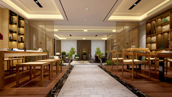 古典老總辦公室設(shè)計(jì):閱讀區(qū)、書法區(qū)、茶水區(qū)比辦公區(qū)整體要高出10-20公分,這樣的高度讓空間更加有序,高度的變化讓空間有了不同,也為整體的設(shè)計(jì)鋪墊了堅(jiān)實(shí)的基礎(chǔ)。